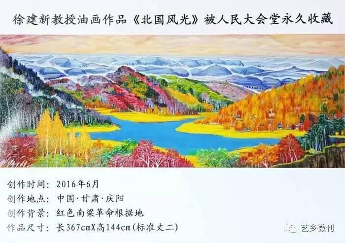 徐建新1985年畢業(yè)于西北師范大學(xué)美術(shù)系油畫專業(yè),1995年至1996年進修于清華大學(xué)美術(shù)學(xué)院,師從吳冠中、張汀、袁運甫、劉巨德等先生,系甘肅省美術(shù)家協(xié)會理事、慶陽市美術(shù)家協(xié)會副主席。在創(chuàng)作上,其作品多次入展全國、全省書畫展并獲獎;在教學(xué)上,多次獲得省市優(yōu)秀教學(xué)成果獎。先后出版有《徐建新素描》《徐建新線描》《徐建新油畫》《徐建新書法》《徐建新人物素描教法》等專著。他的這幅《北國風(fēng)光》創(chuàng)作于2016年6月,以慶陽華池南梁紅色革命根據(jù)地為創(chuàng)作背景,畫面氣勢磅礴,畫作色彩艷麗、層次清楚、透視感極強,充分展示了雄壯優(yōu)美的黃土高原和山川秀麗的南梁革命根據(jù)地。