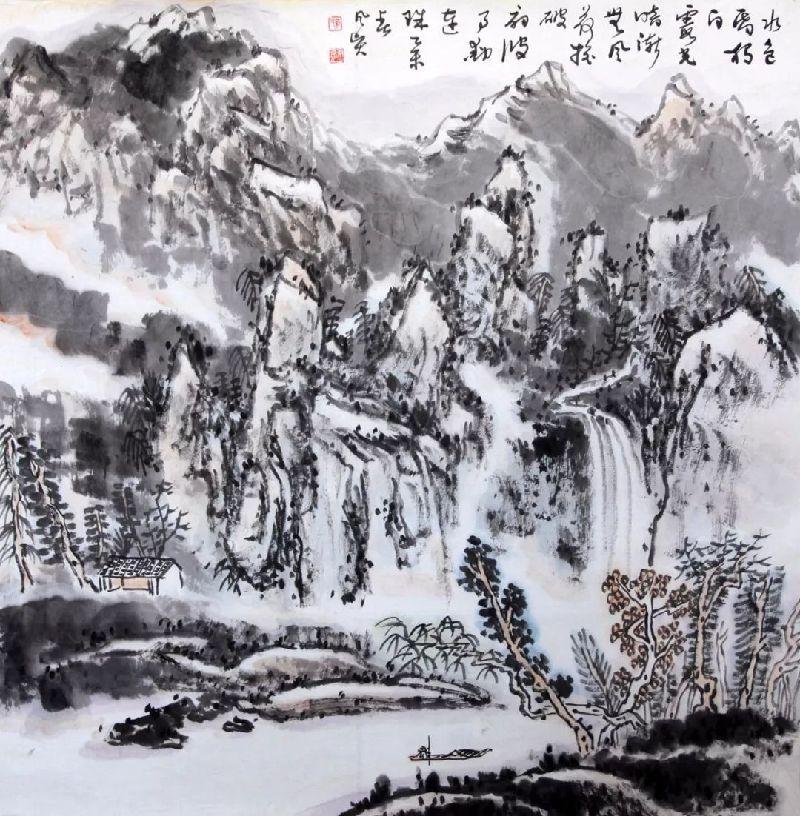 鳳賢兄的畫亦是造詣不淺,他最早是畫畫起家,中途擱淺,轉習書法,后又重新拿起畫筆。他的畫,主要以山水為主,于黃賓虹處用工尤甚,加之書法功夫過人,畫作每每以行草筆意寫之,全無一般畫家之匠氣。