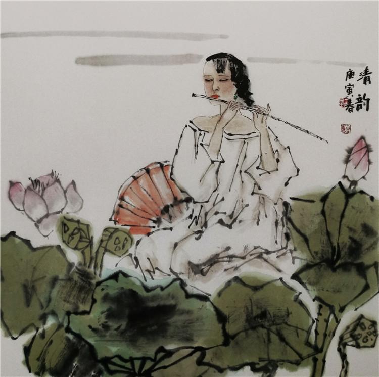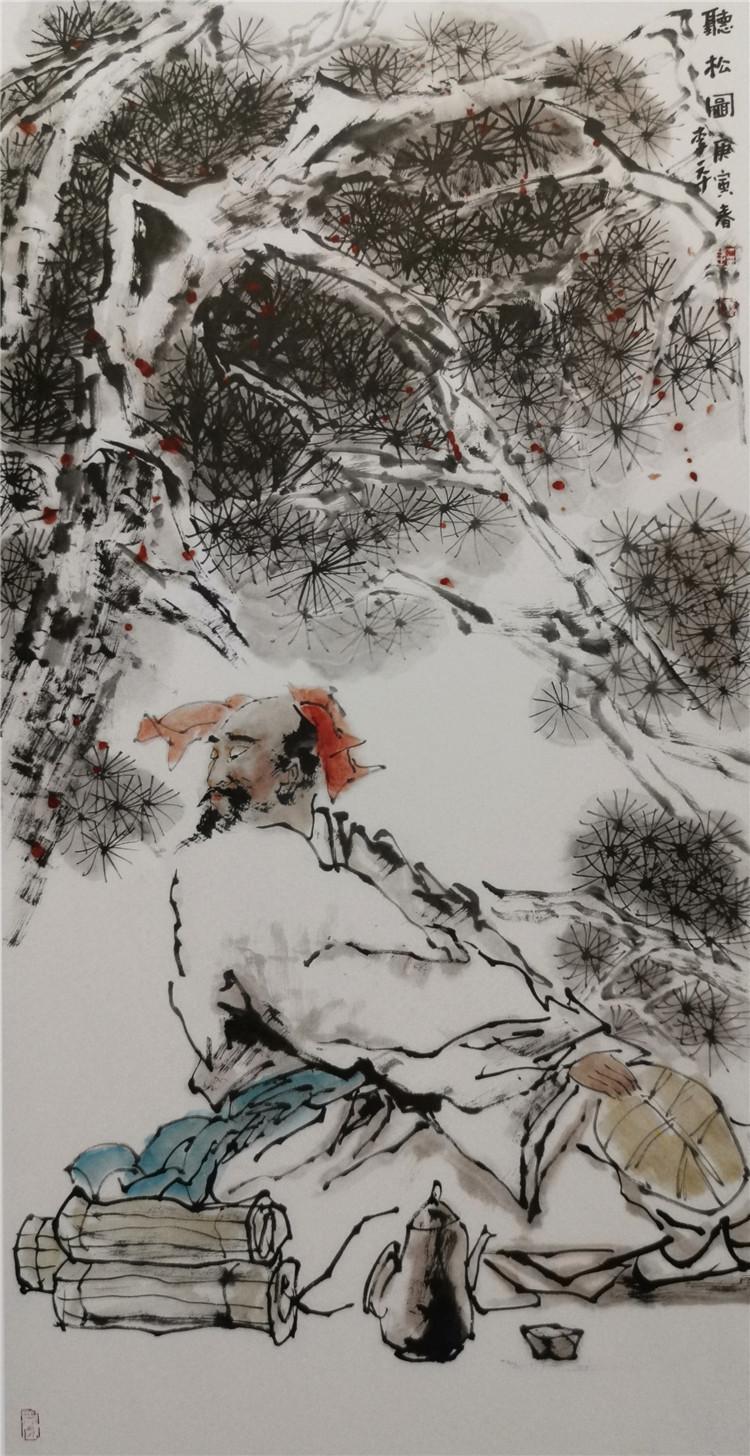 中國畫中的人物畫歷史悠久。隨著社會的進步和中國傳統文化的不斷發展變化,人們對繪畫認知和追求的不斷提高,中國人物畫的理論和實踐日趨完善。特別是現代人物畫在繼承傳統的基礎上,與現代人們的生活實際緊密結合起來,突出表現現代人們的精神風貌與社會生活現狀。但是,從繪畫理論層面來看,仍然與南朝謝赫關于中國畫的“六法論”一脈相承。“六法”的基本內容是氣韻生動、經營位置、骨法用筆、應物象形、隨宜類賦彩、傳移模寫。古人評價繪畫水平高低,主要依據這六法,也就是這六條品評標準。當代人物畫的評價體系,也超不出六法的基本范疇。例如,我們欣賞一件人物畫作品,首先要從整體效果入手,就是要求畫面氣韻生動、視覺沖擊力要強。它是一個有機整體,每個局部互相牽連,相互照應。欣賞一件好的美術作品,一看讓人眼前一亮,第一眼很打動人,活靈活現,生動傳神,這件作品就是一件好作品。所以一件作品的評價,氣韻生動是第一位的。其次,好的作品還要耐看,再看它的構圖章法布局,也就是六法中的經營位置,要求畫面主題突出,布局合理,點線面組織得當,黑白灰調子和諧。畫面的節奏感、韻律感都處理的得當。再深入地看,看畫面的筆墨效果,注重筆墨的功力和線條的質量,就是強調骨法用筆。至于應物象形,傳移模寫、隨類賦彩,也是每件成功作品必不可少的內容。就是要看作品抓形準確、色彩合理,有生活基礎,構成一個有機的整體。