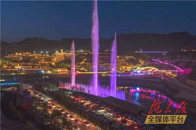 慶城縣藥王洞養生小鎮音樂噴泉(2020年5月6日攝)。通訊員?王正虎?攝? ?