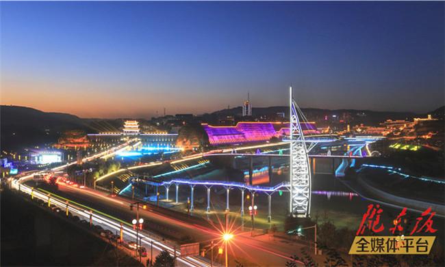 慶城縣藥王洞養生小鎮南門廣場夜景(2018年9月28日攝)。特約攝影?俄勝平?攝? ?