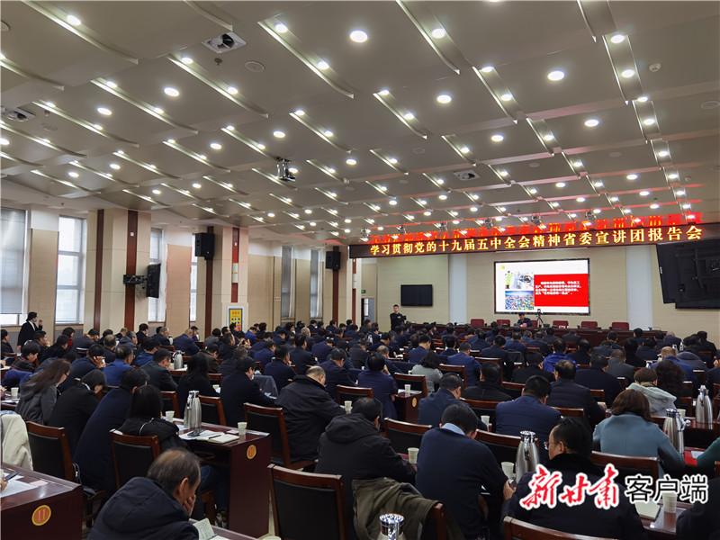 宣講中,蘇海明聚焦甘肅發展情況和慶陽老區實際,通過列數據、講事例、作比較,既展望未來、研判大勢,又立足當前、科學指導,為慶陽市黨員干部作了一場精彩的全會精神輔導。“報告內容主題鮮明,系統全面,既上接‘天線’,又下接‘地氣’,對我們進一步深入學習領會、貫徹落實全會精神提供了有力指導。”聆聽報告的人員表示,要做好全會精神的學習者,將全會精神學深學透、入腦入心;做好全會精神的宣傳者,推動全會精神“傳”入千家萬戶、“播”進田間地頭;做好全會精神的踐行者,將全會精神轉化為推動工作、指導實踐的強大動能。