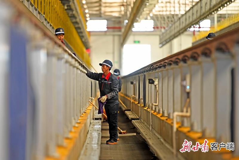 銀川動(dòng)車運(yùn)用所清潔工人正在對(duì)保養(yǎng)檢修軌道進(jìn)行清潔。