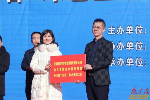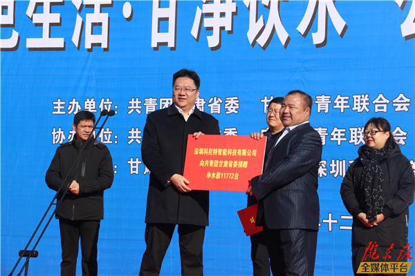啟動儀式上,深圳科尼特智能科技有限公司向全省11772個行政村捐贈安裝凈水機11772臺、濾芯11.77萬根。其中,為慶陽市捐贈安裝凈水機1303臺,為合水縣捐贈安裝凈水機122臺、熱水器122臺。