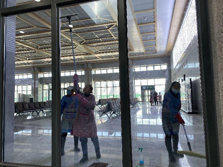 就在銀西高鐵開通之際,柴云云從村委會得知慶城站招聘保潔人員的消息,于是前來應聘。“保潔人員的試用期是3至5天,我今天已經是第3天了,感覺自己表現還不錯。工資一個月給我們每個人開2000多元的工資,每個月還有3天的休假。”柴云云一邊用抹布擦高鐵站內的玻璃門一邊信心滿滿地說。