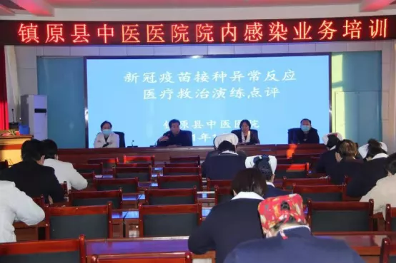 ????2021年1月1日,鎮(zhèn)原縣衛(wèi)健局對定點(diǎn)醫(yī)院、疫苗接種醫(yī)院及鄉(xiāng)鎮(zhèn)衛(wèi)生院下達(dá)指令,進(jìn)行實(shí)戰(zhàn)演練。縣一院、縣中醫(yī)院及各鄉(xiāng)鎮(zhèn)衛(wèi)生院,按照演練指令,快速啟動應(yīng)急預(yù)案,規(guī)范進(jìn)行演練,并分別進(jìn)行了演練總結(jié)點(diǎn)評。這次演練,重點(diǎn)突出預(yù)檢分診點(diǎn)發(fā)現(xiàn)發(fā)熱患者后轉(zhuǎn)運(yùn)、縣一院發(fā)熱門診接診發(fā)熱患者流程、縣中醫(yī)院新冠疫苗接種不良反應(yīng)救治流程等三個方面進(jìn)行演練,共參與140人,出動急救車輛20名。