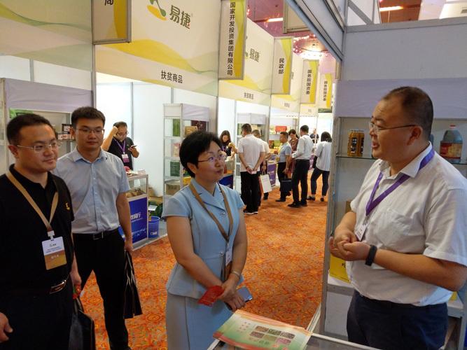 2019年9月10日,邱軍在易捷扶貧展銷會上推介華池農(nóng)特產(chǎn)品。