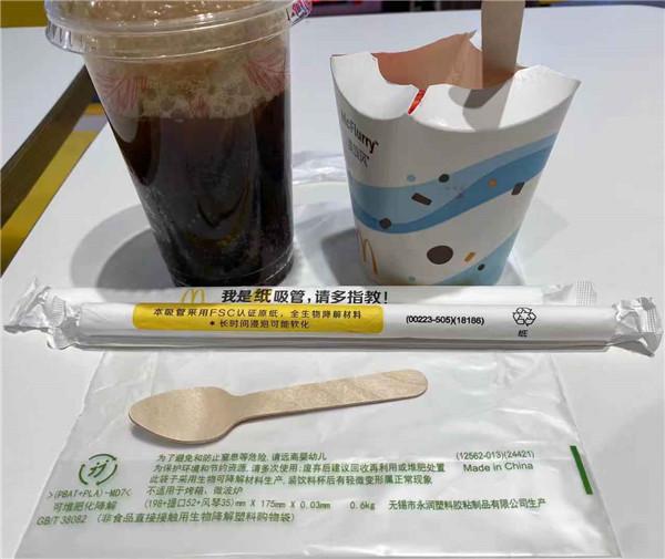 某餐飲店已換上紙吸管、木勺、可降解塑料袋。見習記者米靜攝