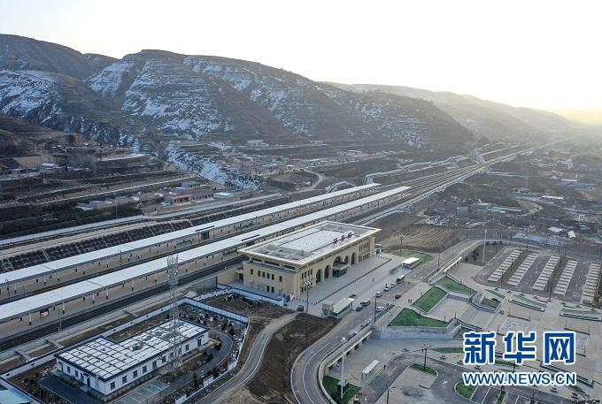 這是2020年12月14日拍攝的銀西高鐵環(huán)縣站(無人機(jī)照片)。新華社記者 馮開華 攝