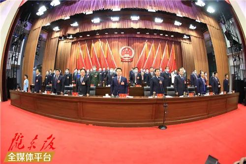 上午9時,董建鎮(zhèn)宣布:慶陽市第四屆人民代表大會第六次會議開幕!會場全體起立,奏唱國歌。