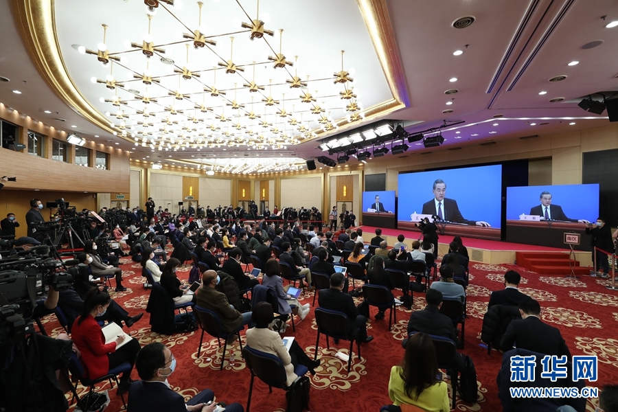 3月7日,十三屆全國人大四次會議在北京人民大會堂新聞發(fā)布廳舉行記者會,邀請國務(wù)委員兼外交部長王毅就“中國外交政策和對外關(guān)系”相關(guān)問題回答中外記者提問。為有效防控疫情,共同維護公共衛(wèi)生與健康,記者會采用網(wǎng)絡(luò)視頻形式進行。這是記者在梅地亞中心多功能廳采訪。 新華社記者 金立旺 攝