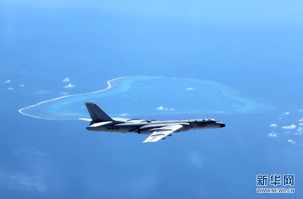 2016年7月中旬,中國空軍出動轟-6K戰機赴黃巖島等島礁附近空域巡航。新華社發(劉銳 攝)