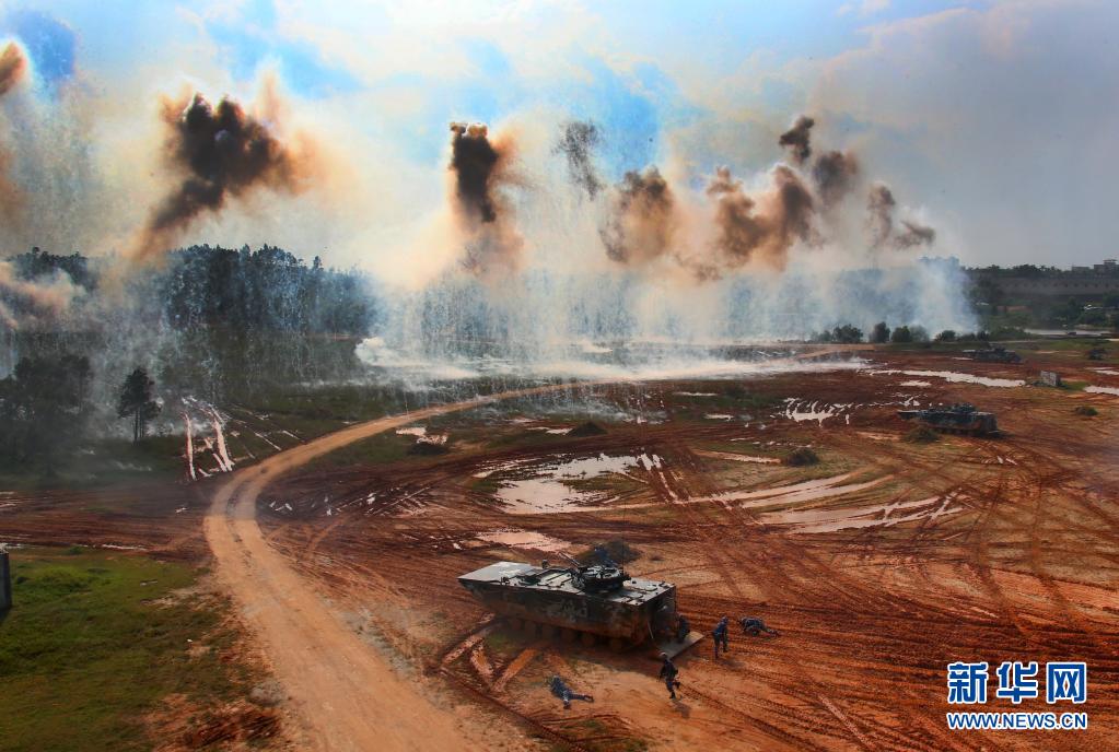 2016年9月14日,在“海上聯合-2016”軍事演習中,中俄海軍陸戰隊混編陸戰分隊對島礁防御之“敵”發起進攻。新華社記者 查春明 攝