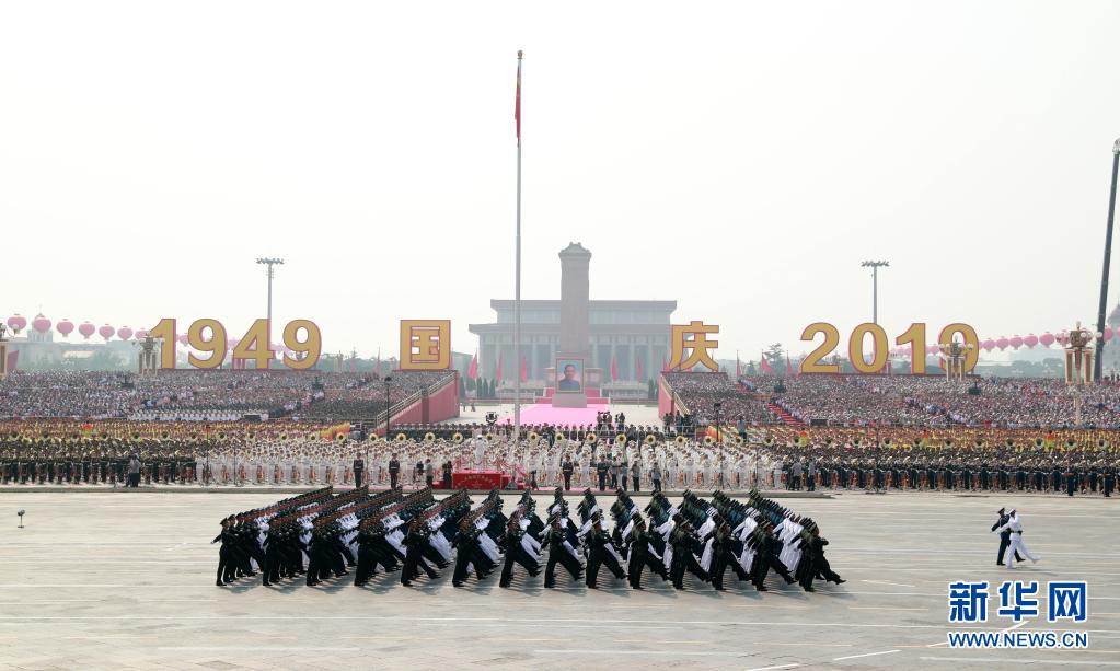 2019年10月1日上午,慶祝中華人民共和國成立70周年大會在北京天安門廣場隆重舉行。這是領導指揮方隊接受檢閱。新華社記者 龐興雷 攝