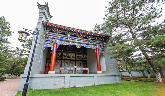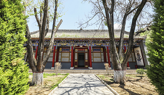 “荔園堡古城內的關帝廟就是當時召開大會的老爺廟,關帝廟門楣上橫書著的‘陜甘邊區蘇維埃政府舊址’是習仲勛同志在建館時親筆題寫。正殿門前那兩棵郁郁蔥蔥的桑樹,是1934年春劉志丹和習仲勛同志親手栽植的。歲月更迭,這兩棵桑樹見證了戰火硝煙里結下的永不退變的革命友誼和先輩們無悔奮斗的遠大理想。”劉曉鳳介紹說。