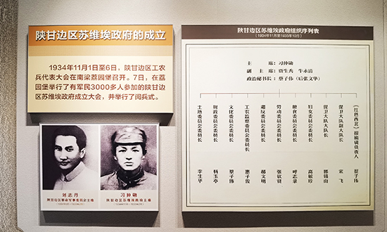 南梁革命紀念館展板資料圖:陜甘邊區蘇維埃政府的成立。隴東報全媒體記者李卿攝