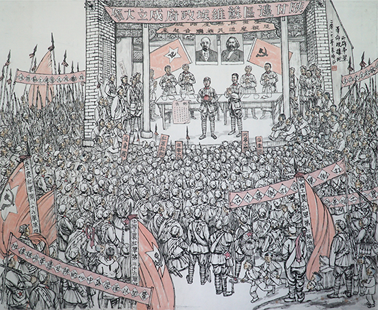 陜甘邊區蘇維埃政府成立大會。袁鵬飛繪