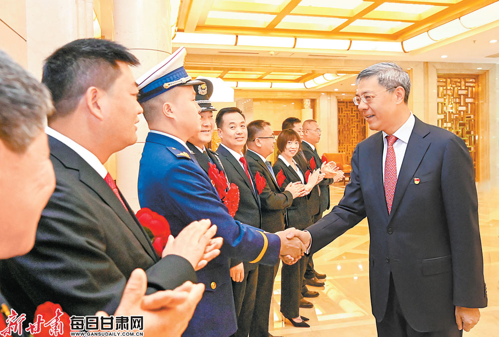 7月5日,省委書記、省人大常委會主任尹弘在蘭州會見了我省全國“兩優(yōu)一先”表彰對象和全國優(yōu)秀縣委書記,同大家座談并合影留念。新甘肅·甘肅日報記者孟捷