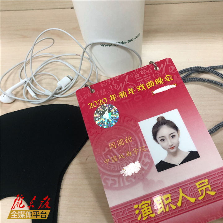 閻圓甜參演2020年新年戲曲晚會時定妝照和工作牌