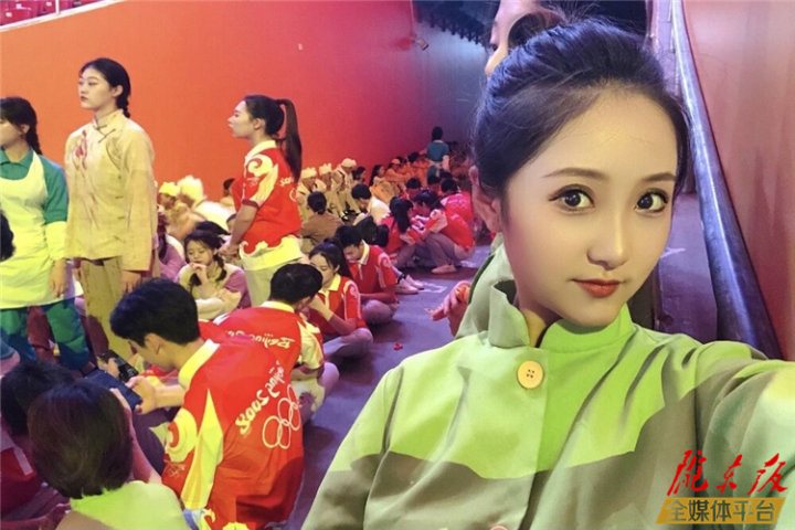 閻圓甜在《偉大征程》演出現(xiàn)場自拍照