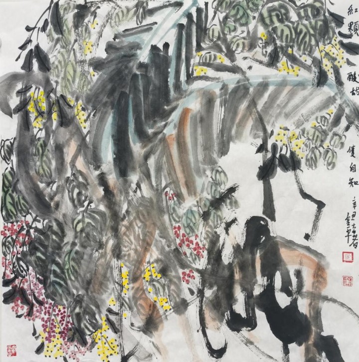 道金平先生的畫作,都因為筆墨生動的醞釀,生機盎然,充滿生命力,他用畫筆表達對大自然的熱愛。這些風格的形成,有后天筆墨錘煉的成果,更有天性的使然,盡抒自然性靈的筆墨情趣。