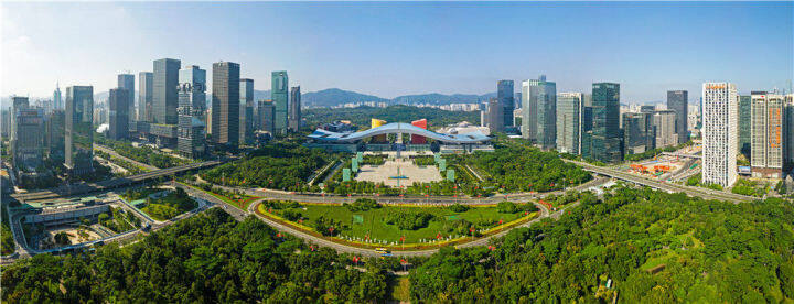 這是深圳市民中心和蓮花山公園一線(2020年10月2日攝,無人機(jī)照片)。新華社記者 梁旭 攝