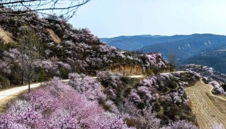 在正寧縣五頃塬鄉三道灣桃園里,上萬株桃花開遍山野,爭相斗艷。陽光柔和、花香陣陣,春天的氣息撲面而來。