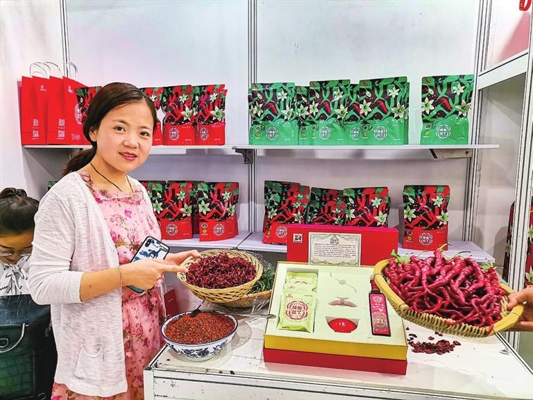 “甘味”農產品展銷館里,工作人員在推介甘谷辣椒。