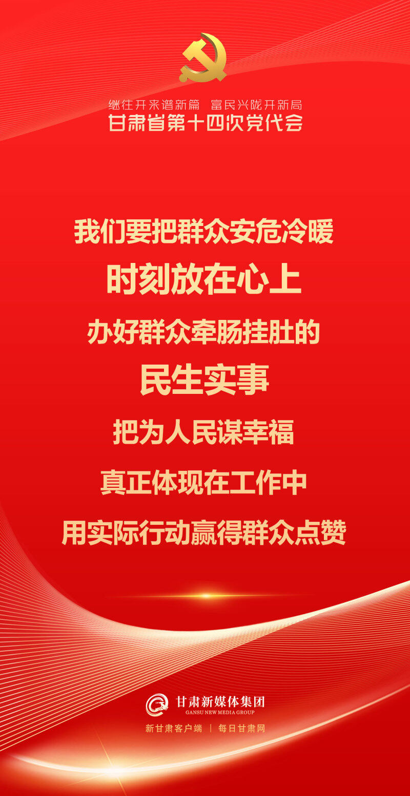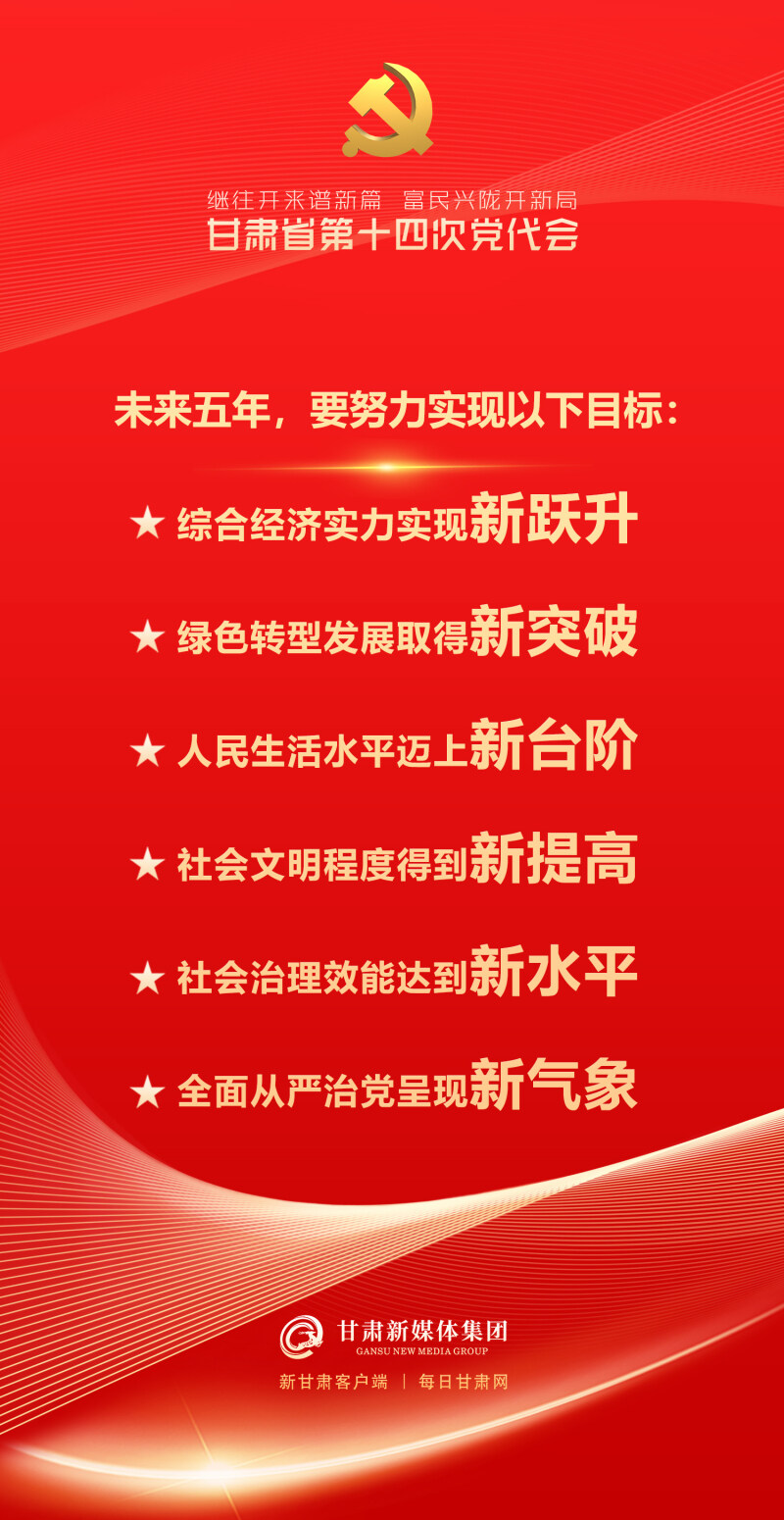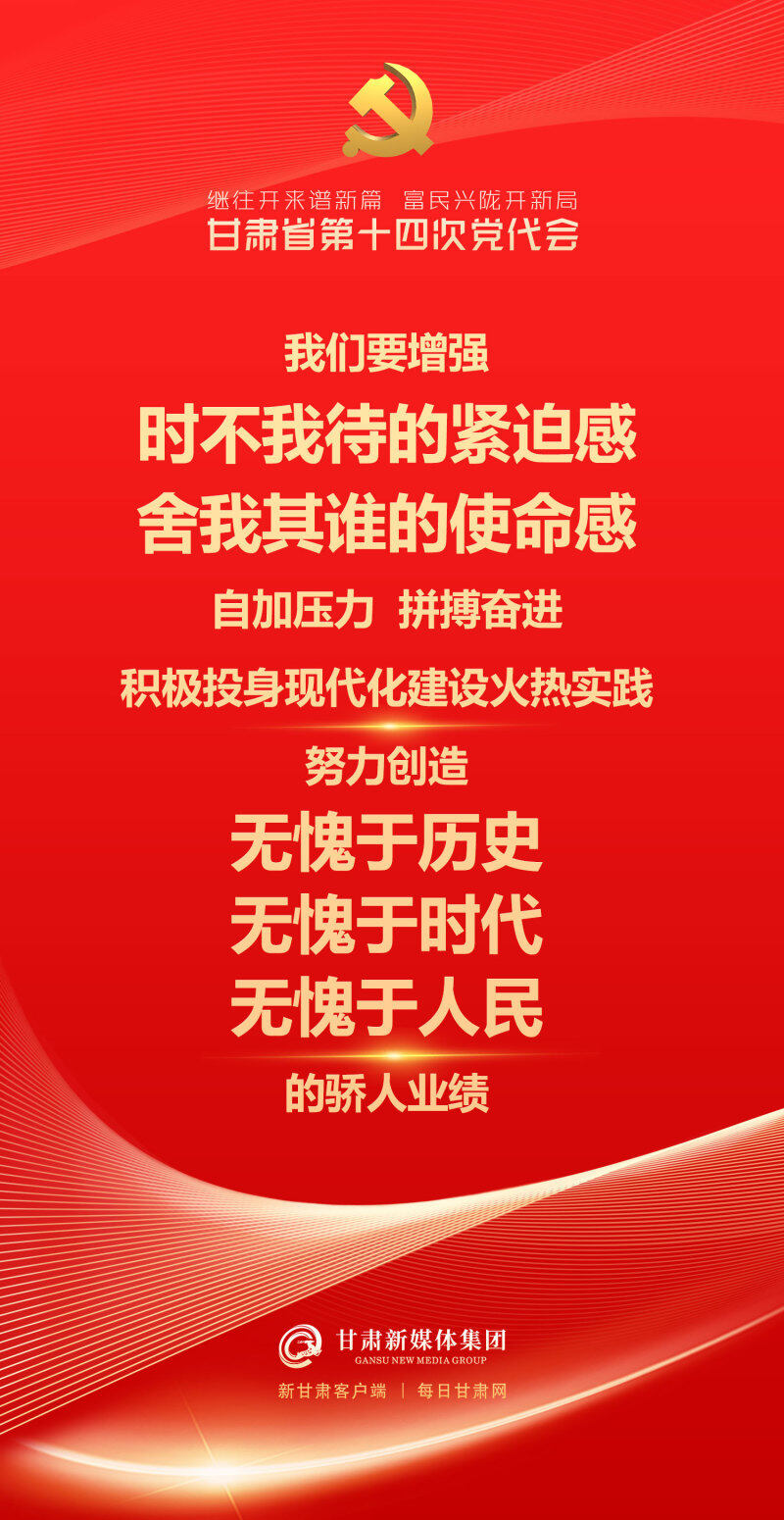 5月27日,中國共產黨甘肅省第十四次代表大會在蘭州隆重開幕。尹弘代表中國共產黨甘肅省第十三屆委員會向大會作報告。報告字字鏗鏘,催人奮進!一起來看~