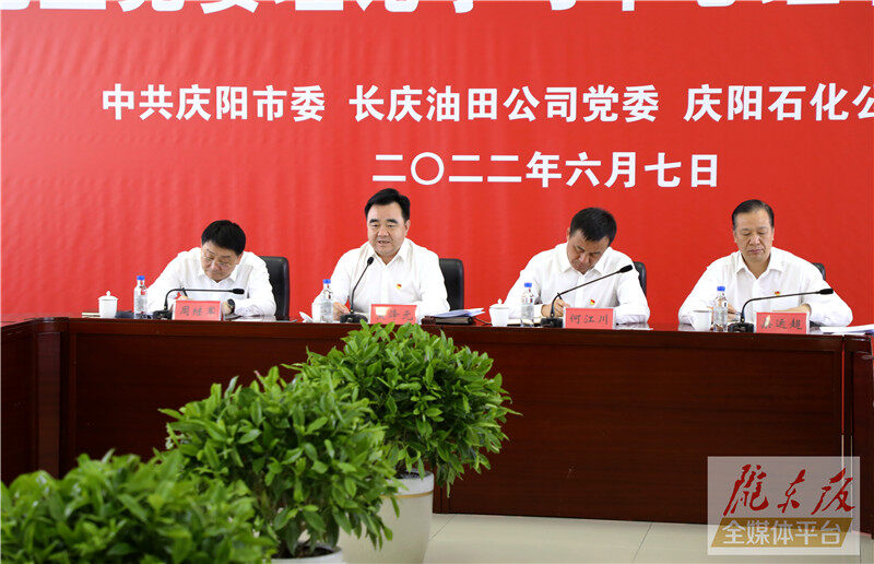 市委書記黃澤元主持會議。長慶油田公司黨委書記、執行董事何江川,市委副書記、市長周繼軍,慶陽石化公司黨委書記、總經理桑運超,長慶油田公司黨委副書記、總經理石道涵作交流發言。地企黨委理論學習中心組成員及相關部門負責人參加會議。
