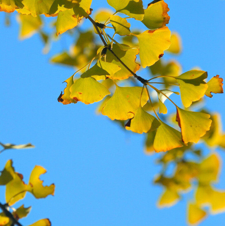 然而在我看來,在春秋那樣的季節(jié),花開花落并不稀奇,遍地綠色也不稀奇,惟有出現(xiàn)在初春垂柳的一抹鵝黃,還有出現(xiàn)在秋末銀杏的一片金黃,卻最是那一抬頭的驚艷。在冬末的土黃或是深秋的暗綠質(zhì)地之上,這些鵝黃、金黃的閃亮登場,顯得是那么明艷動人,一瞥驚鴻,再見驚心。鵝黃引來新綠,開啟春天,而金黃送走深綠,秋去冬來,原來是鵝黃與金黃點亮了春秋。拜它們所賜,春秋之季才有聲有色,不致流于平庸。這些明亮而溫馨的黃色,竟然具有如此重要的意義,人們卻未必認識到這一點。
