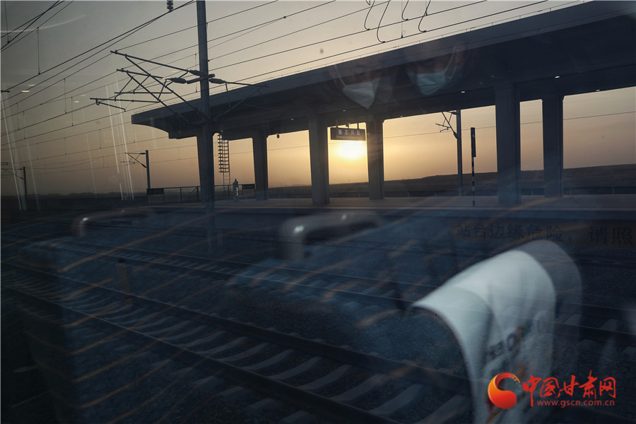列車駛出秦王川站,沿著開闊的秦王川平穩運行,窗外的風景很快被拋到身后。列車前方到站白銀南站。