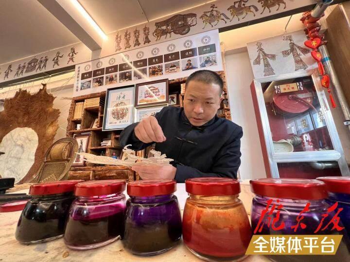 慶陽網(wǎng)訊(記者 南力 趙丹 見習(xí)記者 王華)冬日的陽光透過環(huán)州故城道情皮影館的窗欞,將色彩斑斕的皮影投影在了墻壁上。兔年春節(jié)到來之前,環(huán)縣皮影雕刻技藝傳承人張治文創(chuàng)作皮影元素作品,喜迎癸卯兔年的到來。