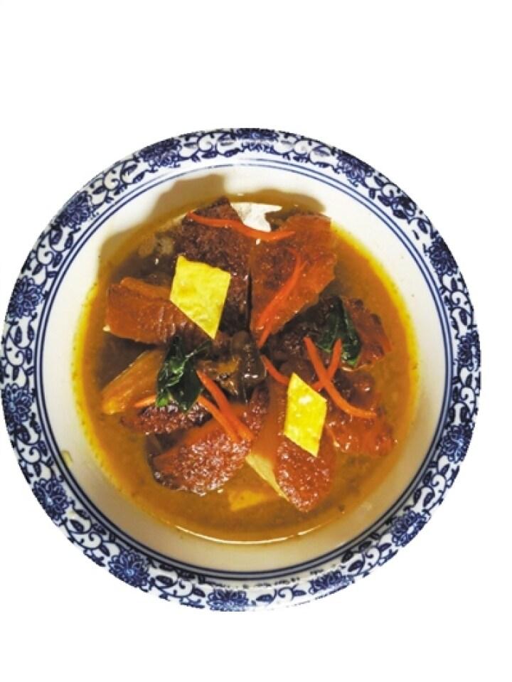 四是豐富的文化內涵。鎮原宴席的上菜順序、烹飪方法,也可靈活掌握,以滿足賓客口味。大部分地方開始上熱菜,第一道是“清雞湯”,清香利口,諧音“清吉”,取意“清吉平安”;第二道是“黃悶肋脊”,諧音“利吉”,總寓“萬事開頭,吉祥如意”的吉兆。以下就是盛菜,盛菜越多越好,越豐盛越好,表示今后興旺發達的意思。“十全”暗含天干,寓意十全十美;“十二碟子”暗含地支;“五維子”暗含東西南北中五個方位,對應五行、五色、五季;“十三花”的數字“十三”在傳統文化中道家為太上之數,佛教中代表功德圓滿,寓意吉祥高貴,代表了主人接待賓客的最高禮遇。