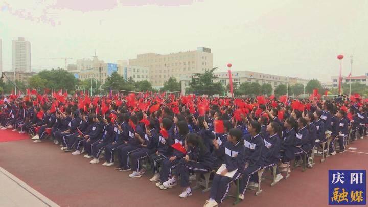 慶祝大會上,全體師生和來賓肅穆莊重,在雄壯激昂的國歌聲中,向冉冉升起的五星紅旗行注目禮。大會對24名光榮從教30年教師,7名市、區級優模,72名校級優秀教師,以及190名三好學生、學習之星、進步之星、優秀學生班干部、優秀團干部等進行了表彰獎勵,并對受表彰的優秀師生名字進行了屏幕展示。表彰結束后,廣大師生一起進行了紅歌演唱。歌聲中,師生們神采飛揚,激情滿懷,展示了慶陽二中在新時代提質發展的信心。