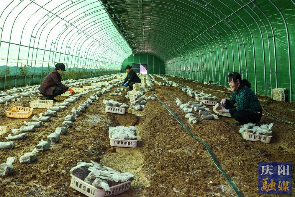合水縣何家畔鎮(zhèn)趙樓子村食用菌生產(chǎn)基地俯瞰。