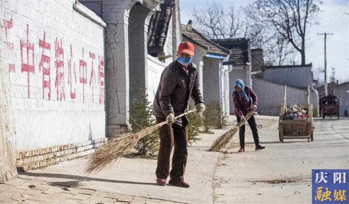 正寧縣三嘉鄉東莊村村民義務清掃村道。