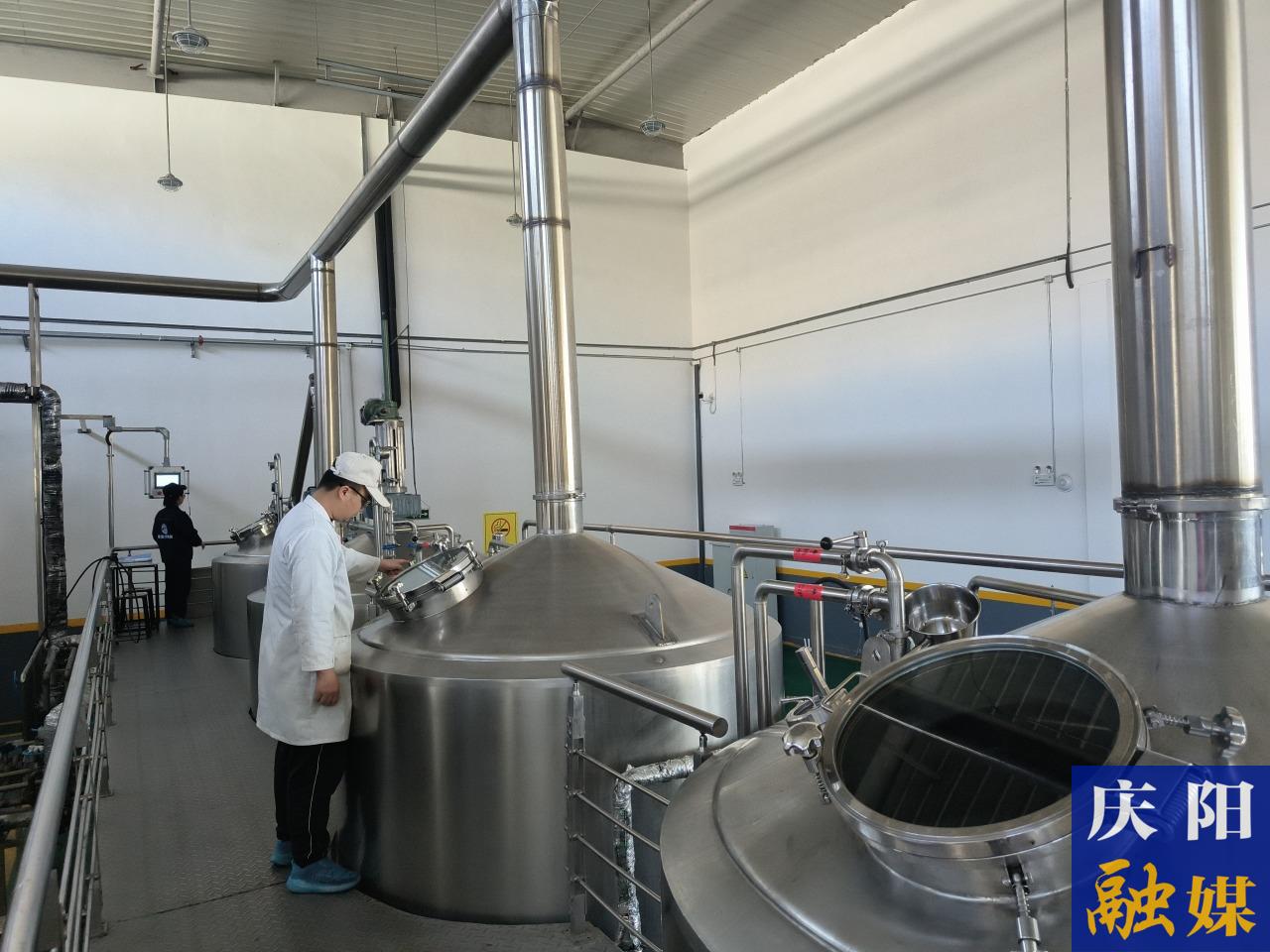 在慶城縣驛馬鎮慶陽隴東全麥啤酒有限公司,干凈整潔的廠區、先進完備的全自動成產線讓人眼前一亮,無塵車間內兩名技術人員正在對進行發酵的啤酒開展實時數據監測。據了解,隴東全麥啤酒有限公司主要從事啤酒、飲料及相關產品的生產和研發,主打產品有白啤、黃啤、黑啤、生啤等。“我們現階段主要開展啤酒釀造,預計4月中旬進入灌裝工作,年產啤酒6000噸,總產值一千萬元左右。”慶陽隴東全麥啤酒有限公司辦公室主任申陽說。