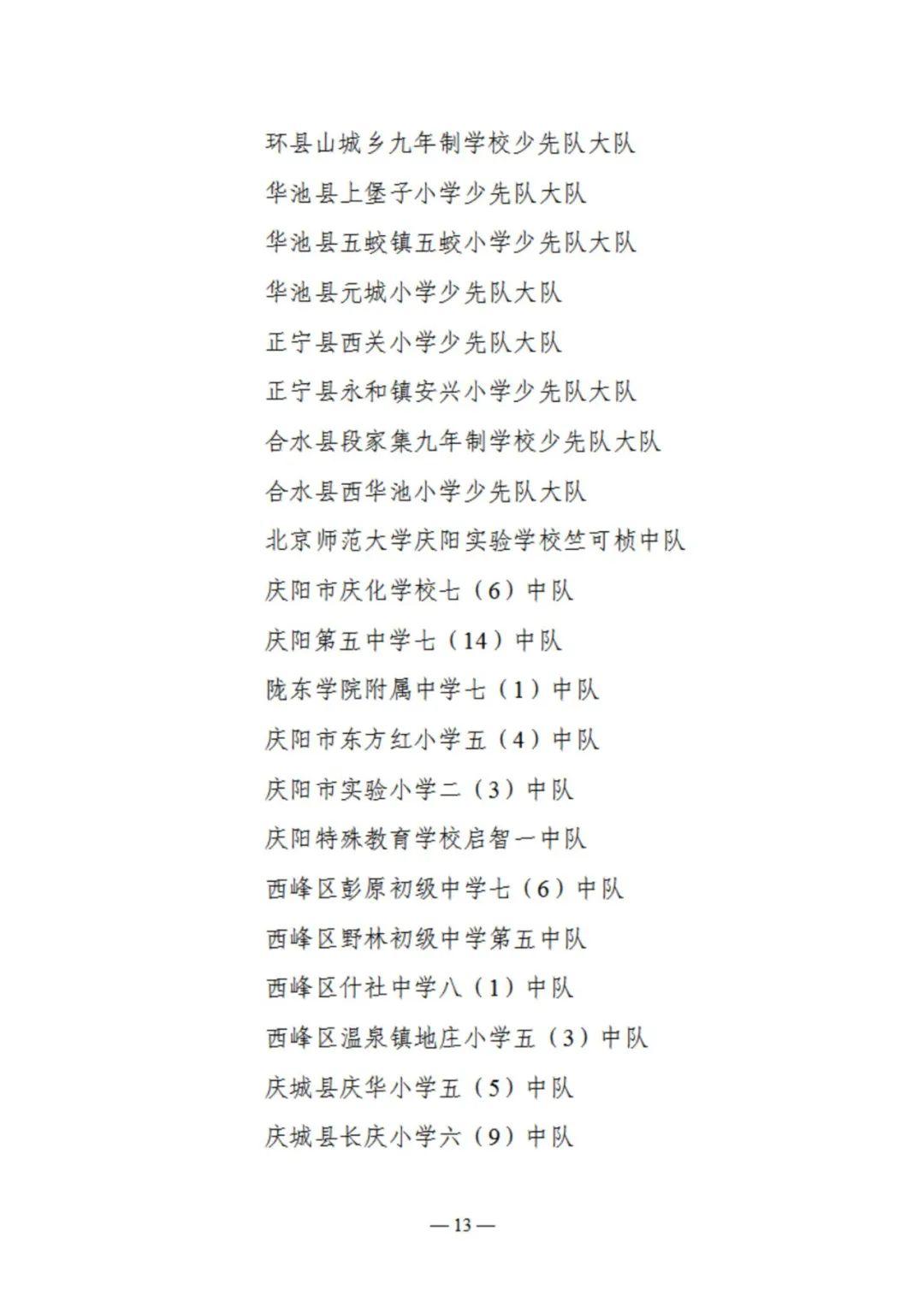 2024年度“慶陽市優秀少先隊集體”擬表揚對象名單