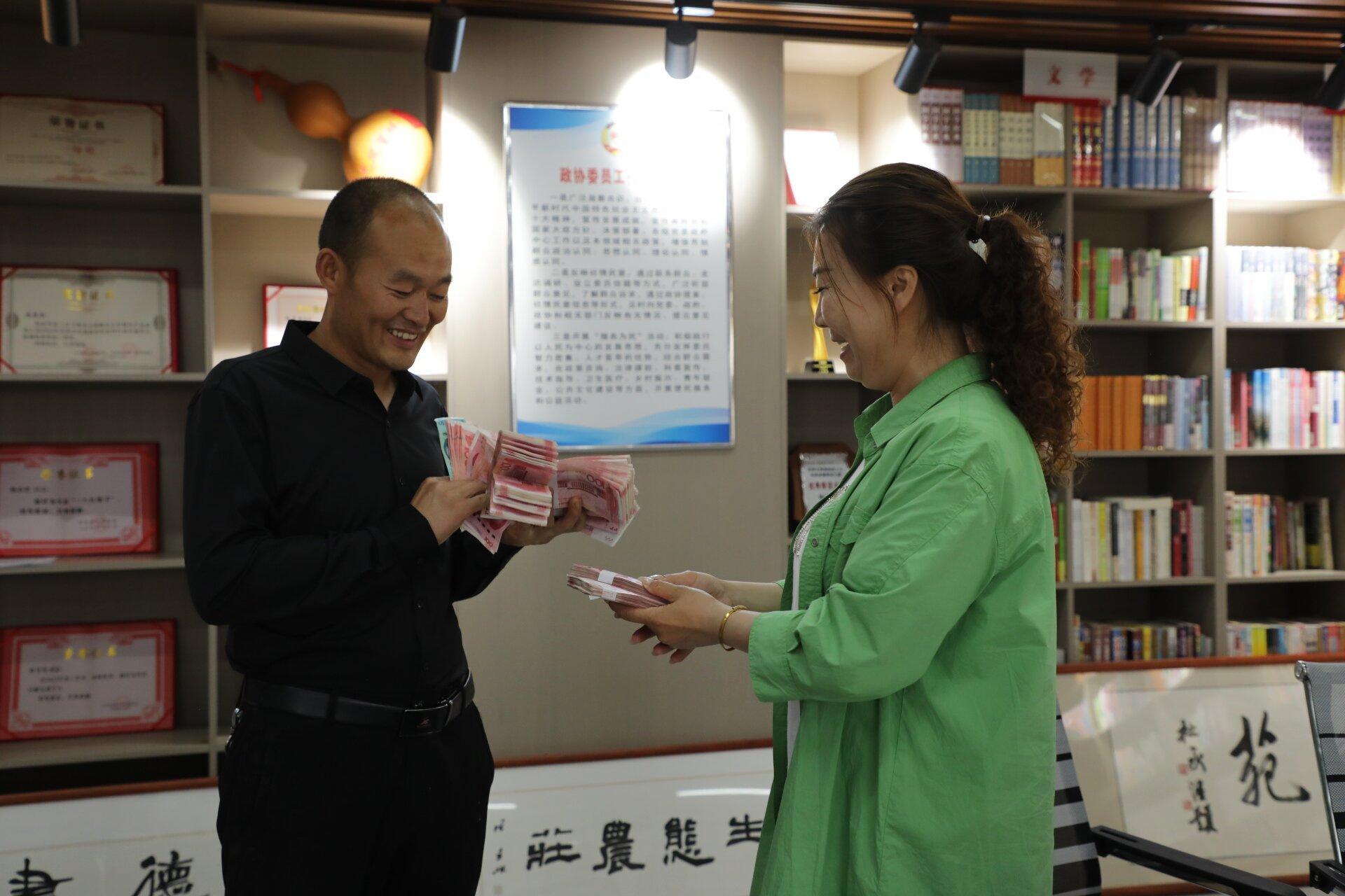 慶陽網訊 (慶陽融媒記者 喬潔)近日,環縣莊子峁生態農莊九德書苑里人頭攢動,農莊在這里為農戶進行2024年第二次結賬分紅。平日里忙里忙外的村民今天都圍坐在這里,等著對賬、簽字、領“紅包”,喜悅之情溢于言表。