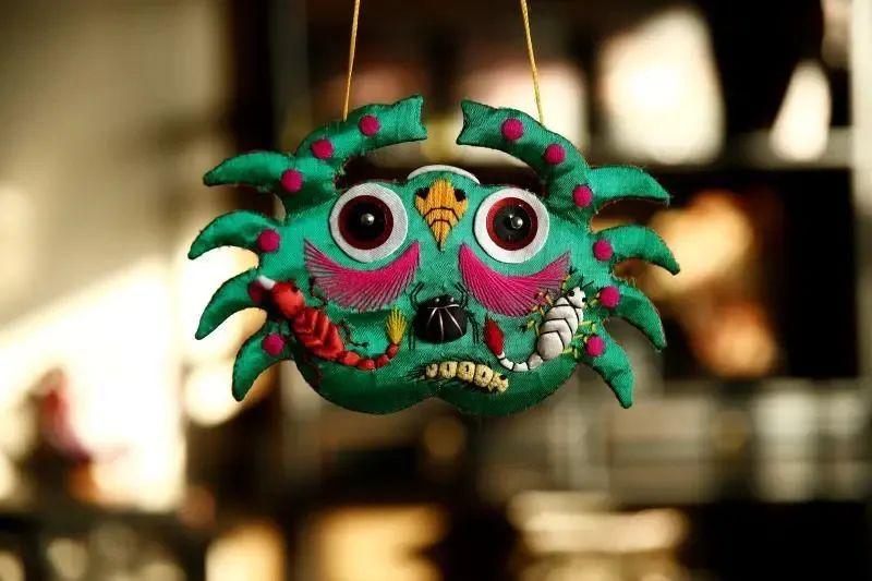 慶陽香包距今已有千年歷史,2001年,慶陽華池縣雙塔寺出土的金代《千歲香包》是迄今為止發現最早的香包實物。慶陽香包形態古樸稚拙,配色大膽對比強烈,具有濃郁的遠古文化氣息及鮮明的地域特色。“五毒”香包基本造型是在蟾蜍、青蛙或螃蟹的背上繡出壁虎、蝎子、蜈蚣、蜘蛛等四毒,因為蟾蜍具有很強的毒性,所以民間傳說中最能驅邪的就是背負著其他四毒的蟾蜍。人們期望將“五毒”佩戴在身上能夠驅走其它毒物,達到以毒攻毒的目的,從而使佩戴者身體健康、無病無災,且每一“毒”都有各自特定的寓意。