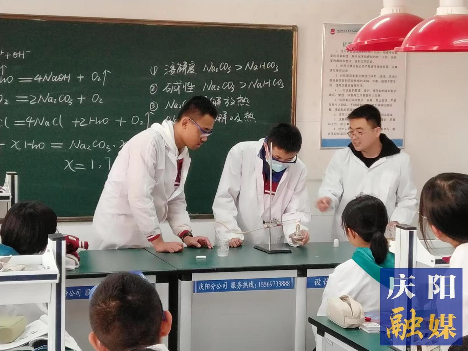 雷振山老師正在上化學課。
