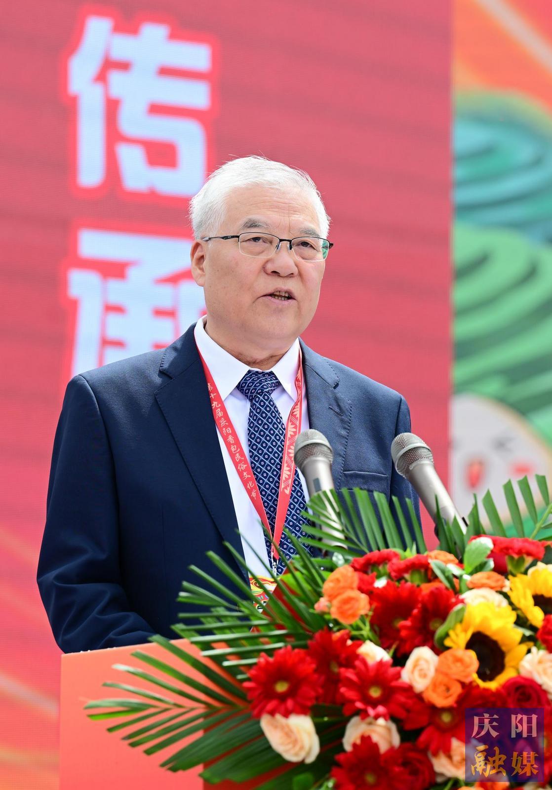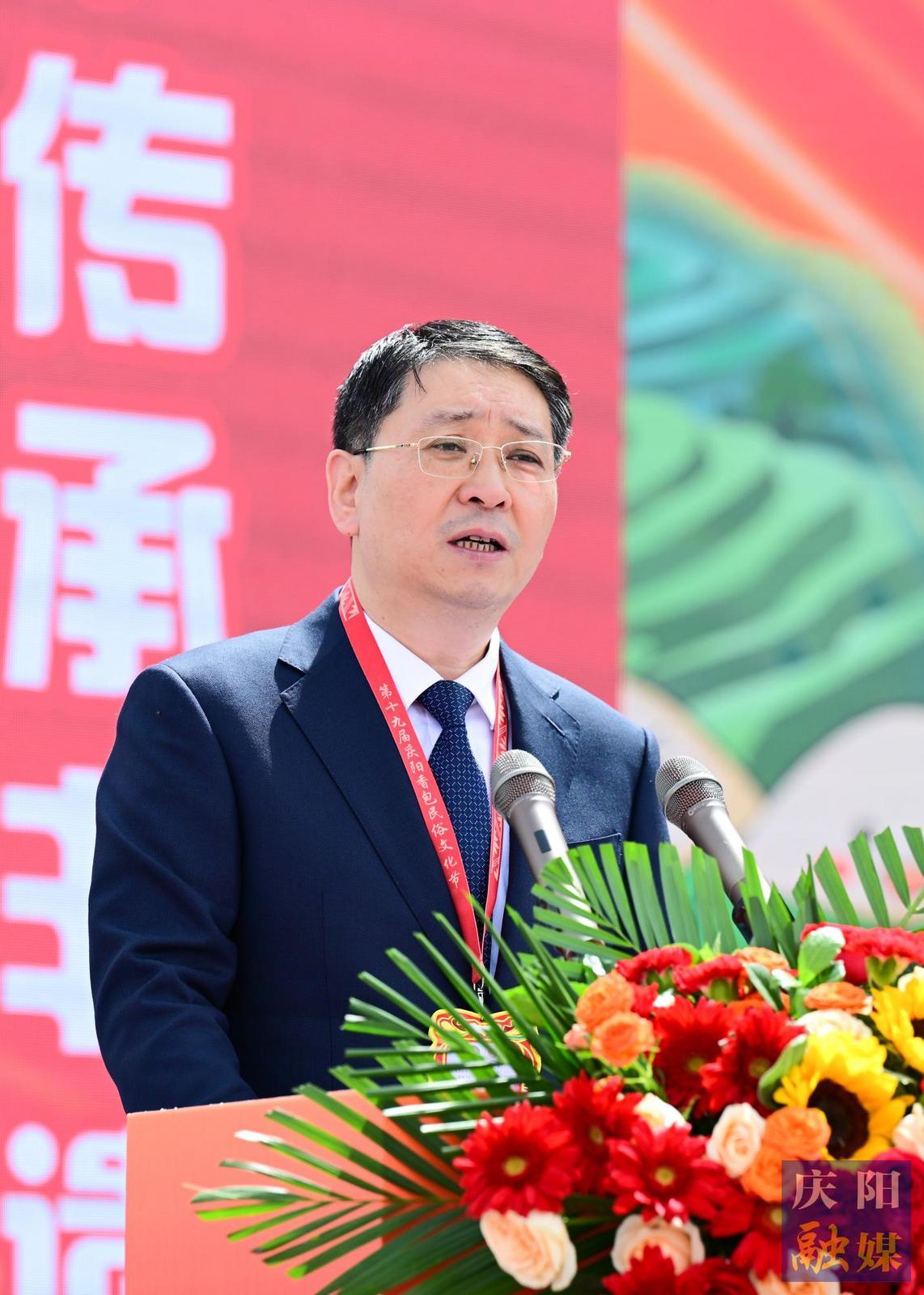 尚勛武對(duì)節(jié)會(huì)順利開幕表示祝賀,向各位來(lái)賓蒞臨表示歡迎。他說(shuō),本次節(jié)會(huì)以展演、展示、展銷相結(jié)合的方式,讓群眾近距離體味甘肅文化遺產(chǎn)的魅力,必將進(jìn)一步激發(fā)廣大群眾熱愛(ài)優(yōu)秀傳統(tǒng)文化的熱情,增強(qiáng)保護(hù)文化遺產(chǎn)的自覺(jué)性,營(yíng)造全社會(huì)關(guān)注、挖掘、保護(hù)和傳承文化遺產(chǎn)的濃厚氛圍。慶陽(yáng)市成功舉辦十九屆香包民俗文化節(jié),是深入貫徹落實(shí)習(xí)近平文化思想的具體實(shí)踐,是落實(shí)中央和甘肅省有關(guān)工作要求的具體舉措,充分展現(xiàn)了地方民俗文化風(fēng)采,弘揚(yáng)了民族優(yōu)秀文化傳統(tǒng),同時(shí)為廣大群眾提供了豐富多彩的文化大餐和精神食糧,對(duì)推動(dòng)慶陽(yáng)經(jīng)濟(jì)社會(huì)高質(zhì)量發(fā)展產(chǎn)生積極而深遠(yuǎn)的意義。希望慶陽(yáng)市委、市政府深入貫徹落實(shí)習(xí)近平新時(shí)代中國(guó)特色社會(huì)主義思想,不斷深化改革、擴(kuò)大開放,凝聚全市干群智慧和力量,走好“‘雙輪’驅(qū)動(dòng)、‘三化’并進(jìn)、‘四建’支撐,老區(qū)高質(zhì)量發(fā)展”的路子,堅(jiān)持文化為魂、旅游為體、康養(yǎng)為用、融合發(fā)展,持續(xù)推動(dòng)文旅產(chǎn)業(yè)一體發(fā)展,全力打造“高天厚土、紅色圣地、文化慶陽(yáng)”品牌形象,促進(jìn)經(jīng)濟(jì)社會(huì)高質(zhì)量發(fā)展。