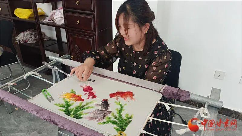 “這幅《洛神賦》長卷已經被杭州的客商6萬元訂購了,這幅作品,我們的繡娘用隴繡技藝一針一線慢慢繡,全部繡完要8個月。”左煥茸老師說,傳統的刺繡需要時間打磨,通過傳習室,她把村莊周邊的婦女請來統一培訓,愿意上班的都留下來每天在這里搞刺繡。這些繡娘有老人、還有殘疾人,大家在這里擁有了一份工作,生活也變得更好。