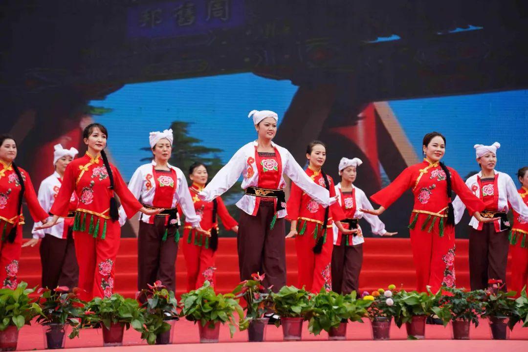 第十八屆慶陽香包民俗文化節“和諧慶陽大舞臺”群眾文化展演活動中,慶城縣組織演員表演徒手秧歌《舞動慶州》。(資料圖)