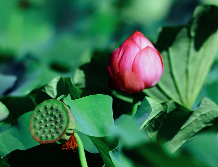 記得那天是拂曉,太陽剛剛露出大半兒,我在村民們早起忙于勞作的大嗓門中醒來,像往常一樣去蓮池邊上散步。沒想到竟看到星星點點的花苞嶄露頭角,當時激動得趴在池子旁邊看了好大一會兒。村民們雖起得比我早,但他們既要勞作,蓮花的開與不開似乎與他們沒有多大關系,也沒有我這樣的歡喜。