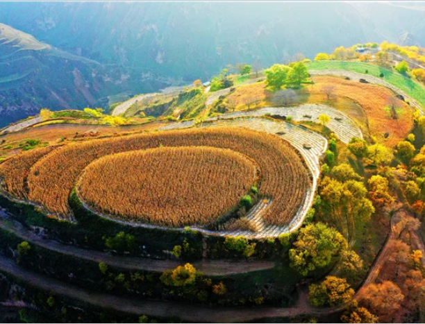 陽光透過稀疏的云層,灑在清凌凌的河水里,如同碎了一河金子,波光閃閃爍爍;灑在山下茂盛的莊稼上,每一道光線都像是大自然的恩賜,那金黃與翠綠交織成的生動畫卷,猶如畫家的調色板;糜谷低垂,沉甸甸的掛滿了果實,微風吹來,它們在風中輕輕搖曳,像是大地母親溫柔地撫摸;玉米秸稈開始發黃,沉沉的玉米棒不堪重負,像倒掛金鐘般垂掉下去,和同著葉子在風中合奏豐收的交響曲。