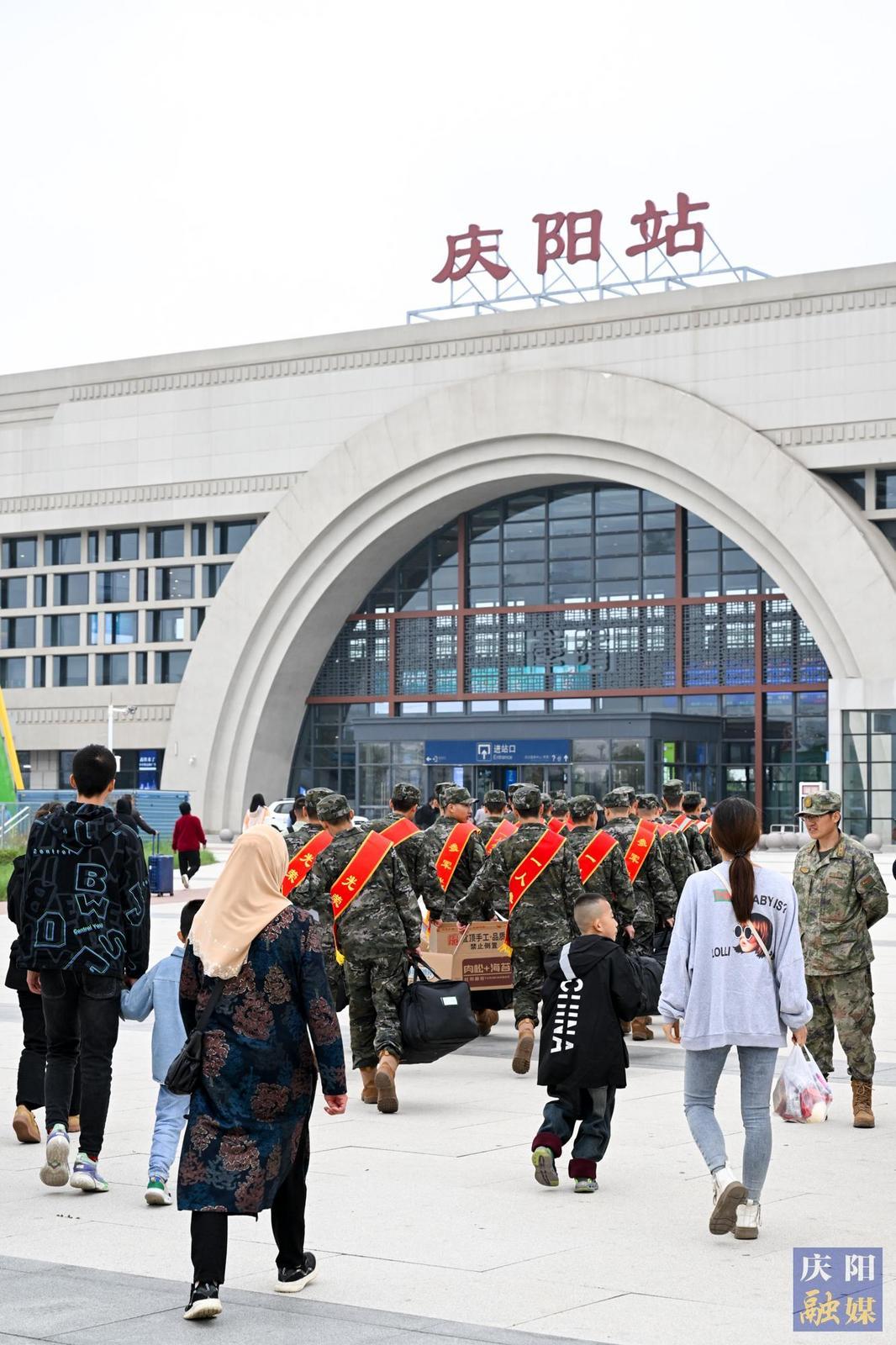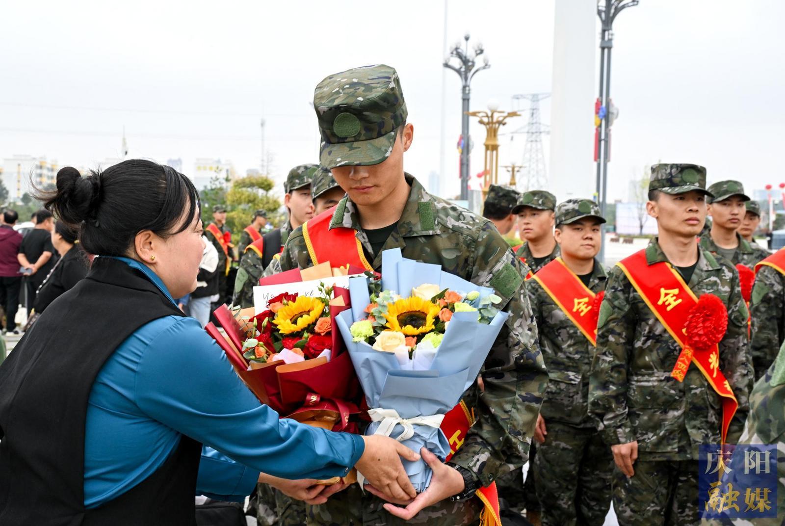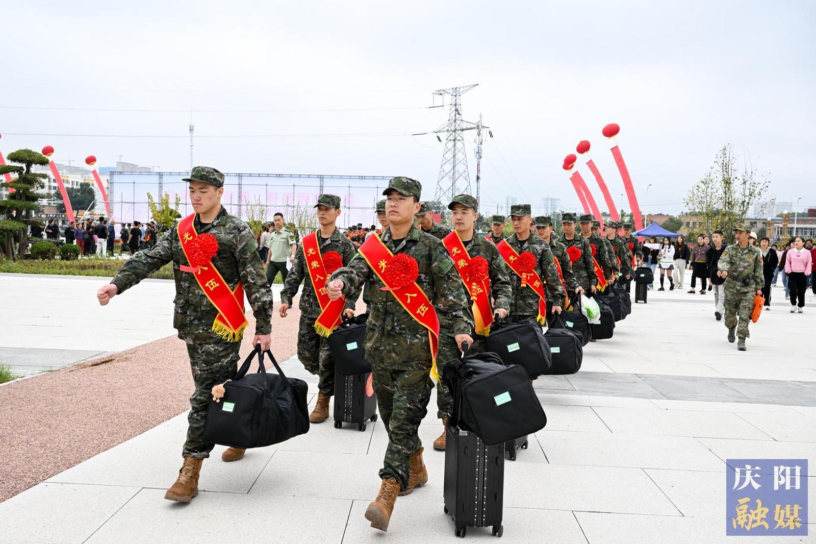 新兵入伍歡送儀式在慶陽站站前廣場舉行。