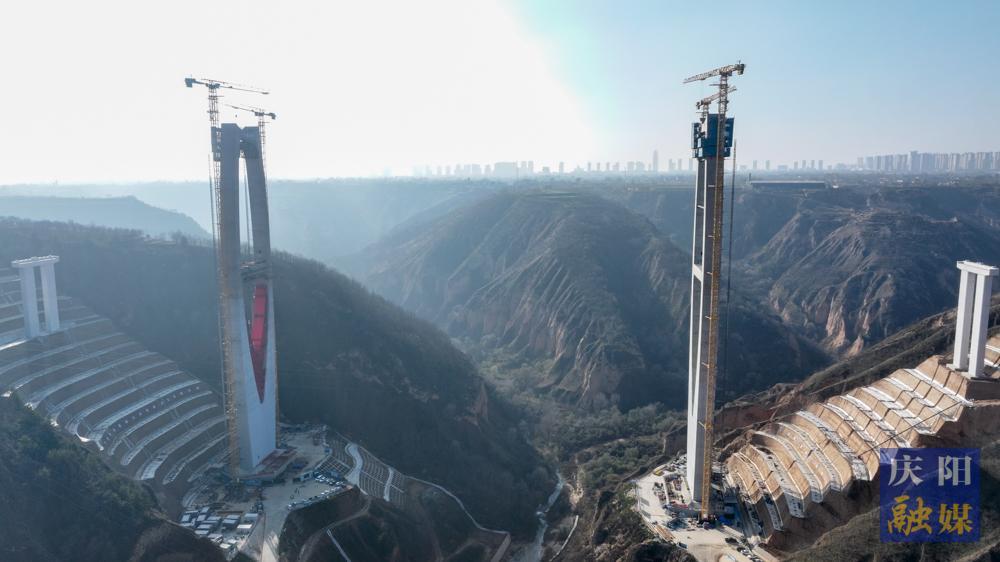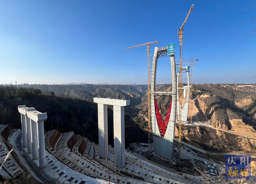 慶陽網訊(慶陽融媒記者 石強)11月20日,隨著最后一片裝飾鋼結構吊裝就位順利摘勾,G244線慶陽過境段公路項目張鐵溝特大橋5號索塔裝飾鋼結構安裝任務全部完成,標志著張鐵溝特大橋5號索塔本年度施工任務全部完成。