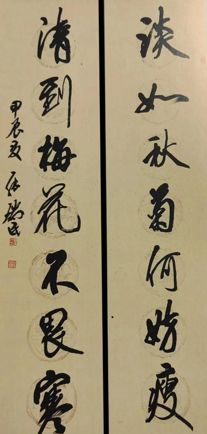 這似乎開啓了他對筆法的深度思考!看得出在他近期的書藝中,多了一些衂措和甩筆,尤其關注轉折和提按,腕力傳導,更顯硬度和趣味,線條在運行過程中有意追求對空間的表現力,速度急緩有度,虬媚相間,筆劃不再隨意,而象心電圖,以表達心靈的氣象為追求!(上)